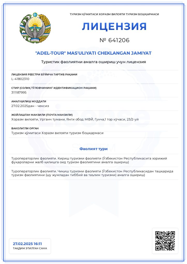 - Все туры по древним городам Узбекистана (Самарканд, Бухара, Хива, Шахрисабз, Термез, Ферганская долина) и Средней Азии (Туркменистан, Таджикистан, Киргизстан и Казахстан.);